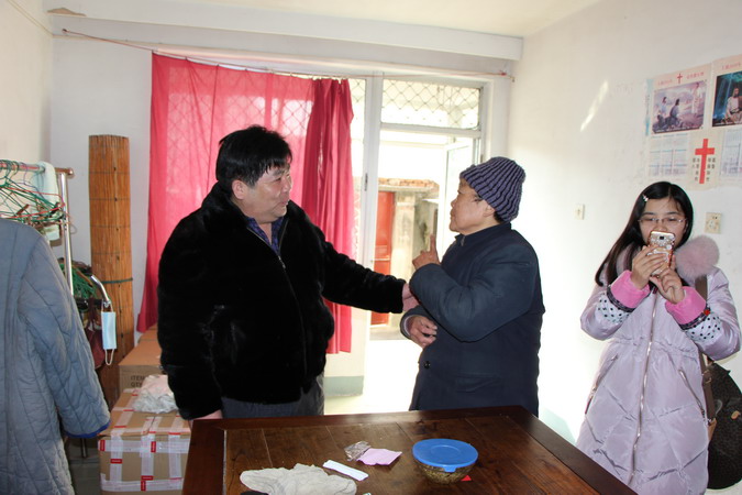 2017年1月24日上午,南通市基督教两会和南通第一城基督教堂的同工在爱国会主席施成忠牧师的带领下,前往南川园、城市花苑和南通大学康复医院看望弟兄姊妹。在南川园孙姊妹的家里,施牧师与她亲切交通,孙姊妹感动万分,向施牧师见证了她在那里的美好见证。