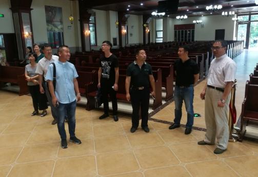 2018年8月8日下午海门市民族宗教事务局黄卫杰副局长第一次率领海门市天主教爱国会班子成员姚建辉神父等神长、修士(女)来到南通第一城基督教堂进行友好访问。黄局长表示此行主要目的是贯彻年初海门市天主教爱国会的工作部署,即落实好国旗进教堂(堂口)的工作。宾主双方就教会规范化管理(消防安全)、教堂(堂口)功能区的设置和布局、教会中国化(建筑、文化元素、氛围)和践行社会主义核心价值观、多媒体、图书室、人才建设等方面进行了朴实的交流和探讨。黄局长和姚神父均表示收获很大,感触颇深,真的不虚此行!回去以后,一定按照灵活多样的思路,把海门的天主教事工开展得更加有声有色,并且,黄局长提出今后,海门市天主教会要经常与南通市基督教两会和第一城基督教堂来往,盼望双方可以建立起友好的对话机制,把“基督教中国化”建设得更好!