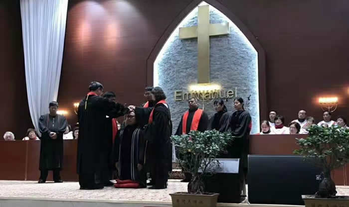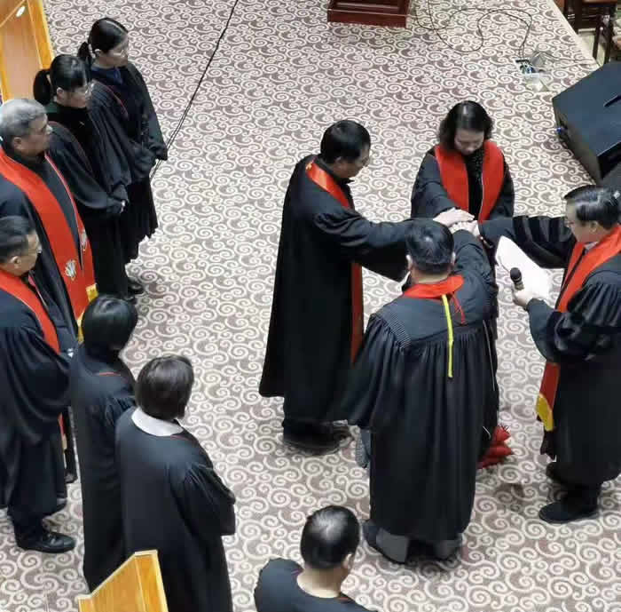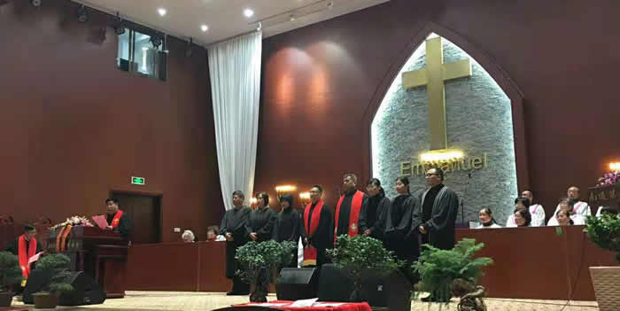 江苏省基督教两会今天在南通第一城基督教堂隆重举行圣职按立典礼。典礼由江苏省基督教协会会长何介苗牧师主礼,施成忠牧师、赵惠娟牧师、张志祥牧师担任襄礼。按立了陶余良、赵丹、刘晓琴为牧师、韩亚玉、潘小仙、王兴为长老,黄伟邦和王峰晋升牧师。