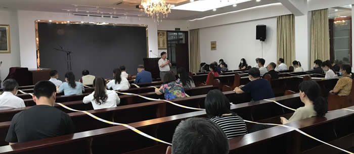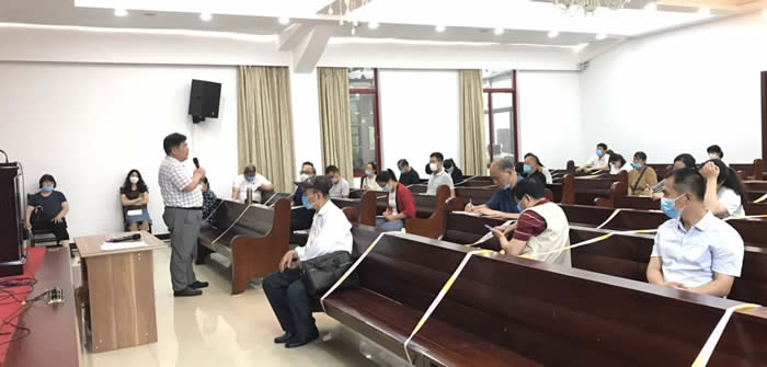 2020年6月5日下午2点,南通市基督教42个场所负责人在南通第一城基督教堂多功能一厅出席疫情消毒、防疫安全工作现场会。