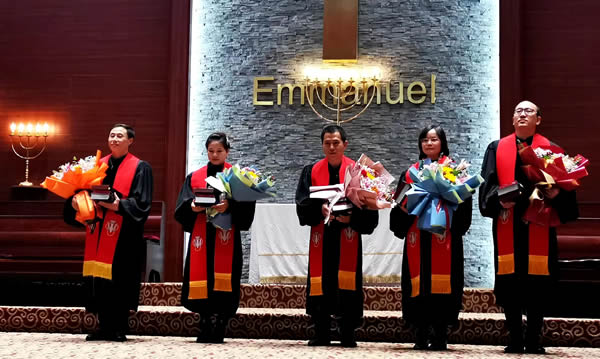 江苏省基督教两会圣职按立小组为无锡市基督教两会办公室主任马崢、南通第一城基督教堂秦俊晓、启东惠萍基督教堂黄冬梅、启东寅阳基督教堂殷亚军按立牧师,海安基督教堂卓启扬晋升牧师进行了相关仪式。