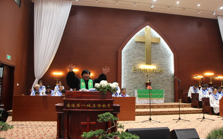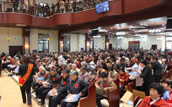 2017年10月29日上午,南通第一城基督教堂举办敬老节礼拜。根据敬老活动方案,年满70周岁的弟兄姊妹在礼拜前佩戴大红花,坐在教堂的前十排。其中第一排的老人,在崇拜中获得佩戴大红花礼仪。参加本次敬老活动,并佩戴大红花的弟兄姊妹近300人。为了确保活动有条不紊进行,后期保障部的弟兄姊妹作了精心策划,让老人们在教会中感受到在基督里面的大爱与尊重。